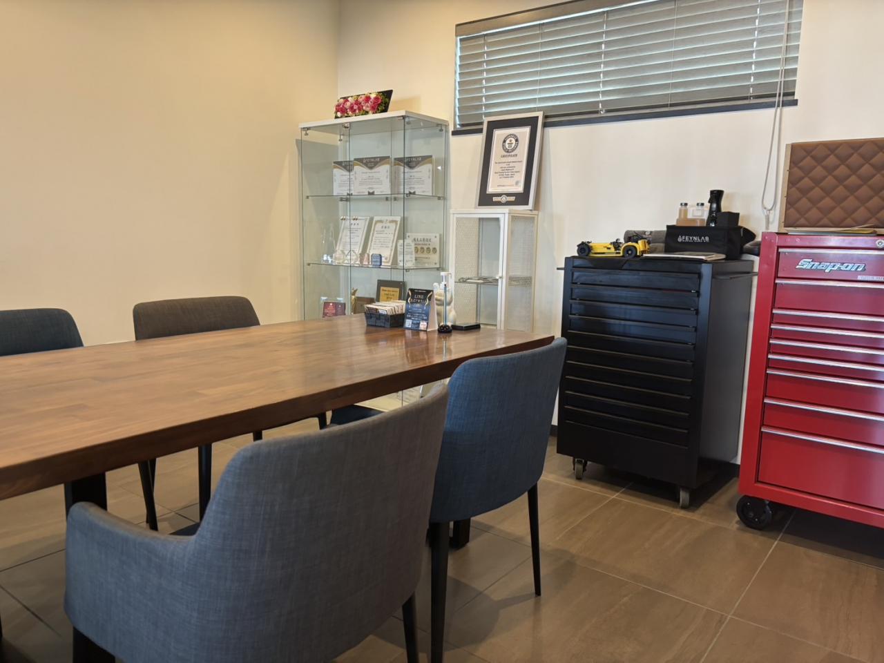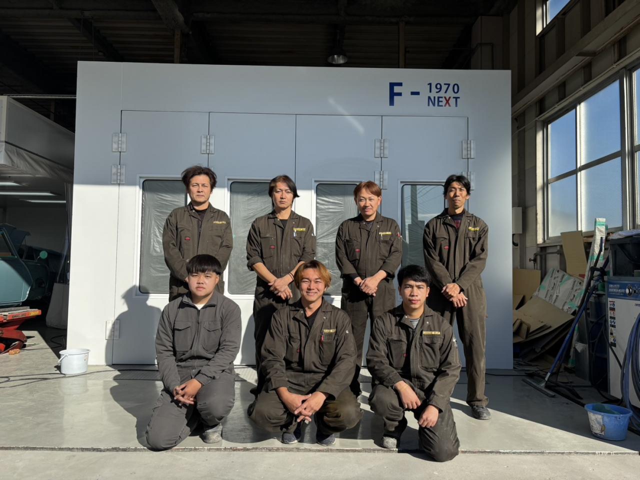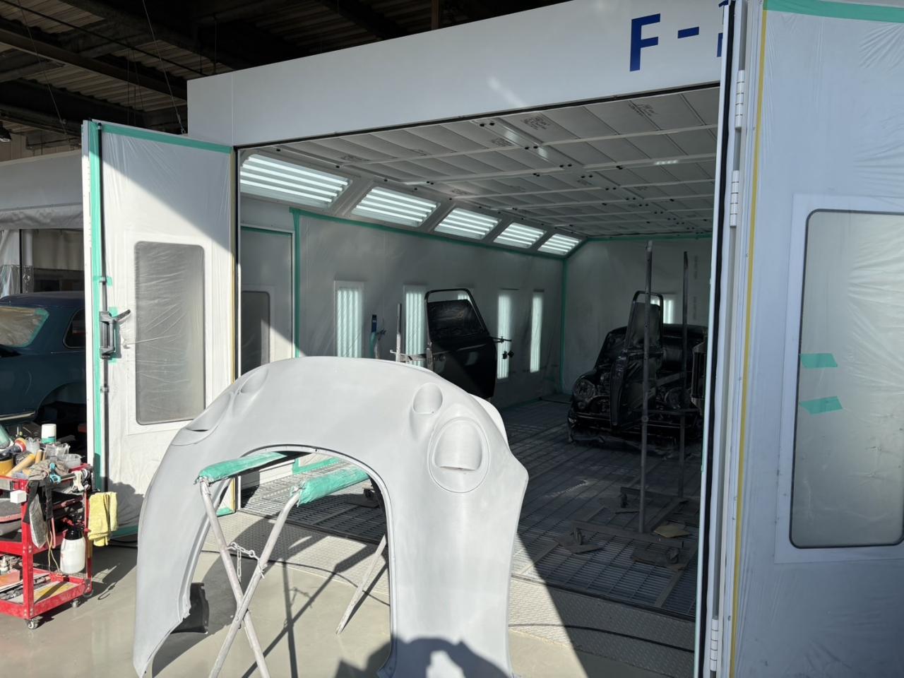高性能塗装ブース: ゴミやホコリを完全に遮断し、新車のような光沢を再現するクリーンな環境を完備。