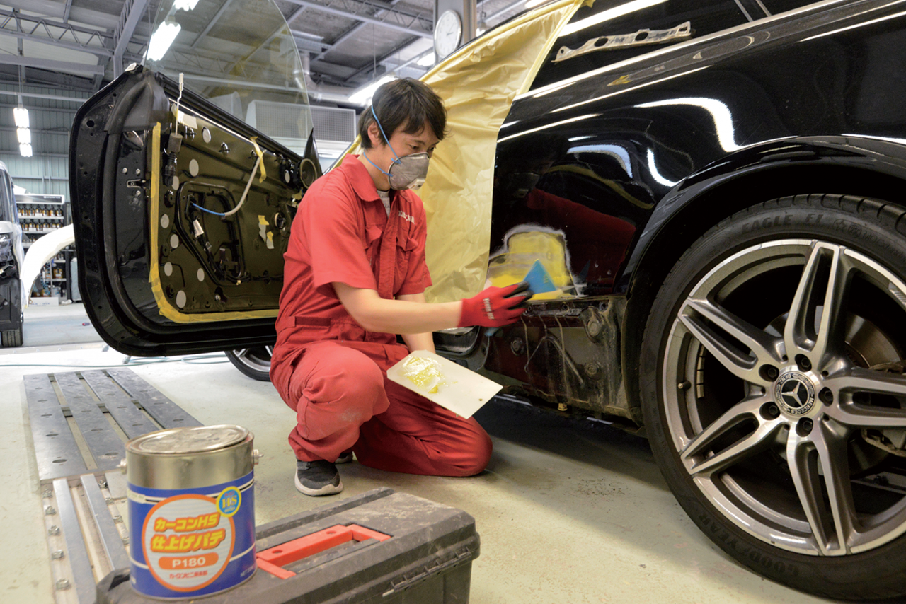 「マイスター認定ショップの称号に拘った理由は二つあります。一つは、他店との差別化です。数多あるクルマの修理店の中から当店を選んでもらうためには、マイスター認定ショップの称号は大きな力を発揮すると考えたからです。しかも、京都初ならイメージ的にもより明確に差別化が図れます。だから早く取らなければと焦りましたね(笑)。二つ目は、作業の時短が図れて、しかもキレイに仕上がるカーコン工法を極めてみようと思ったからです」