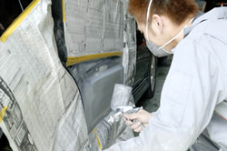 他にもボディーショップテルにはこだわりがあります。たとえば、代車を常時10台以上用意し、絶対に切らさないこと。納期は絶対に守ること。ちょっとしたキズ・へこみのお客様でも、洗車とルームクリーニング、撥水コート加工を無料でサービスすること。特に、クリーニングは女性がきめ細やかに行い、サービスでここまでやってくれるのかと驚かれるお客様もいます。