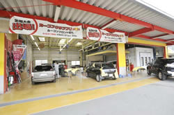 カーコンビニ倶楽部加盟は2000年。近隣にまだ加盟店がなかったため、宮崎県まで見学に行き、地域一番店としてオープン。加盟後、それまでは取り扱っていなかった車検もはじめました。