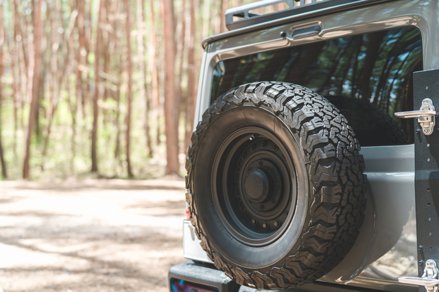 スズキ・ジムニーやトヨタ・ランドクルーザーなどのオフローダーは、年式・使用によっては外付けスペアタイヤが標準装備になっています。