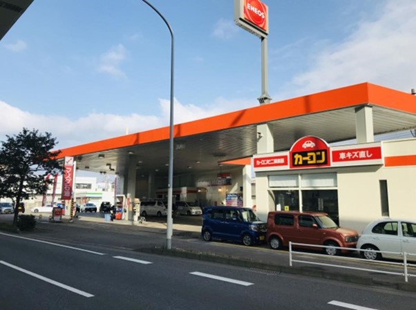 マスダ石油 小笹店はENEOSマークが目印のフルサービスガソリンスタンドであり、カーコンビニ倶楽部の板金修理もご利用いただけます。