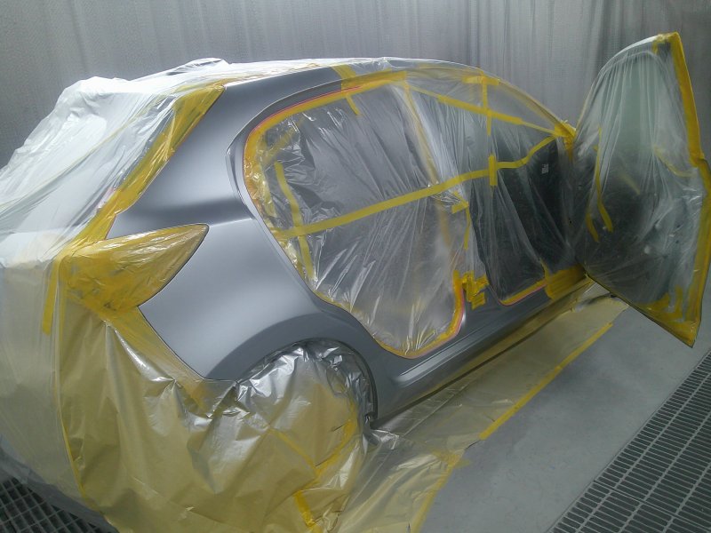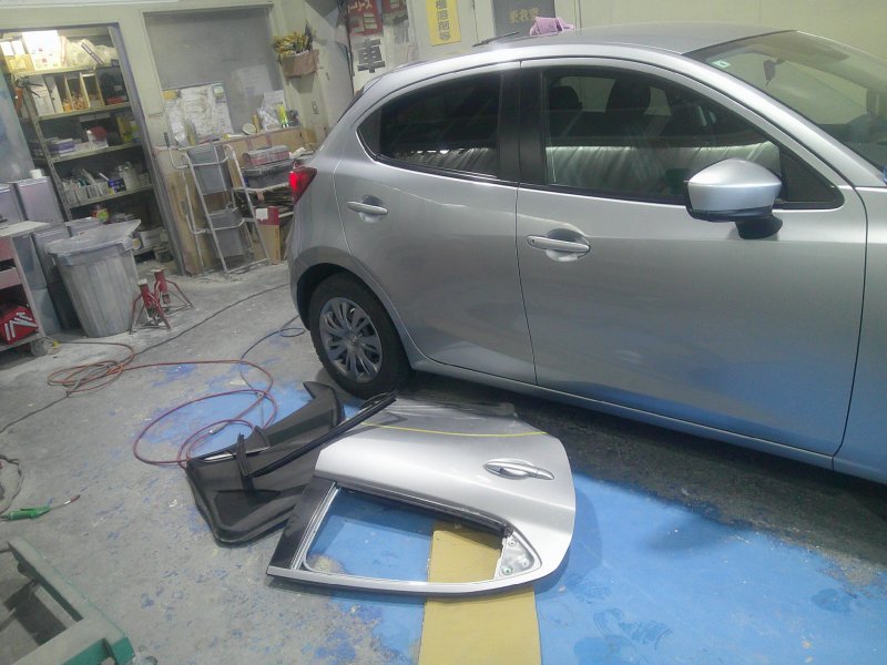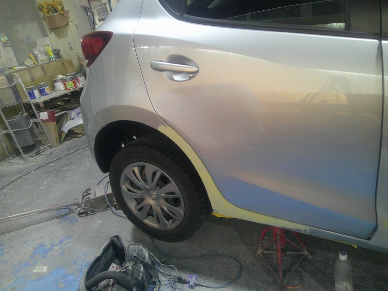 今回はマツダ2の右前後ドアとクォーターパネルの修理事例です。