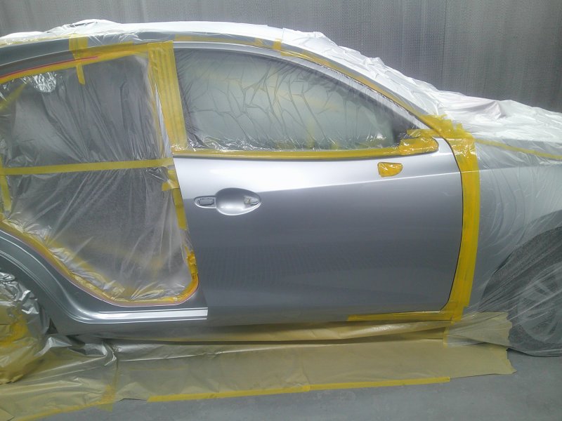 修理したパネルを同じ色で塗装することでパネル間の色差がなくなり仕上がりが良くなります。