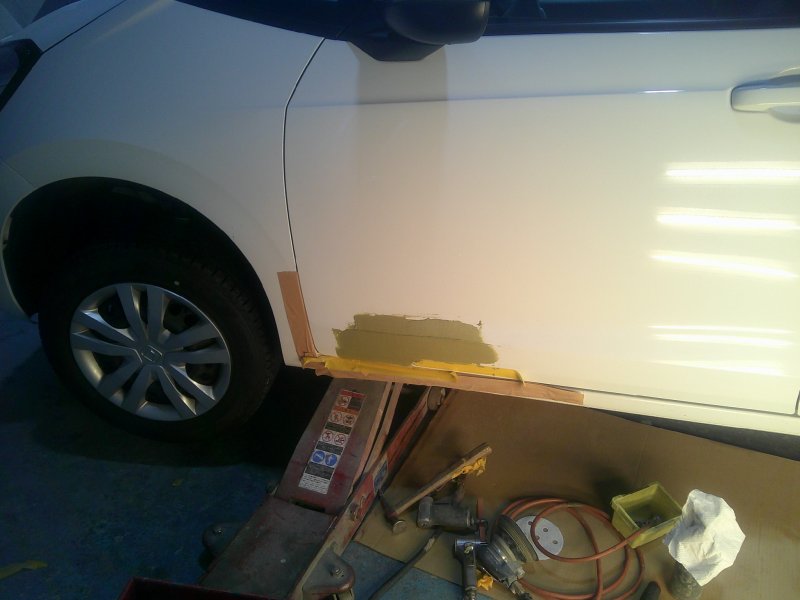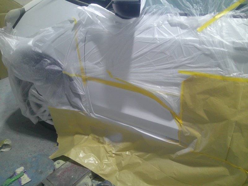 ヘコミの修理は通常通りとなりますが、費用を抑えるため部品は外さずにマスキングで作業を行いました。