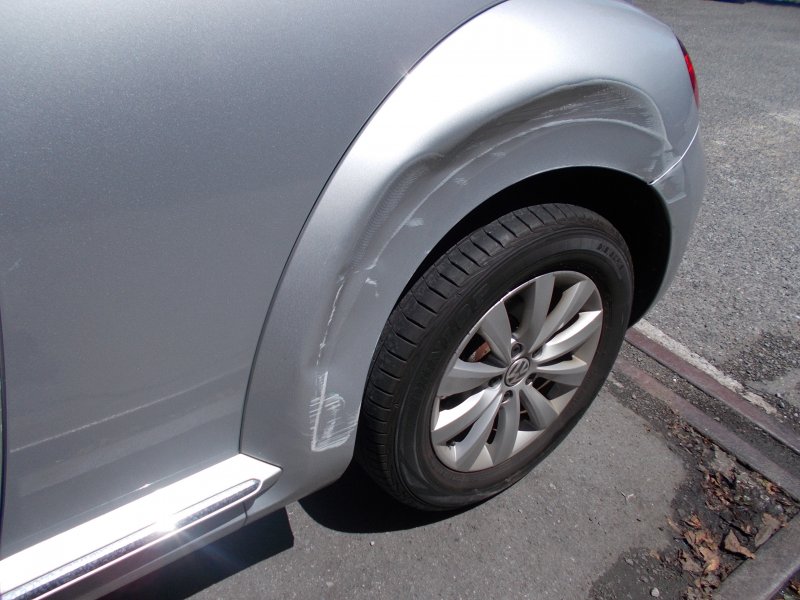 リヤバンパーだけでなく、クォーターパネル後部にも少しヘコミと削れを生じていました。通常は2日間程のお時間をいただくケースですが、事情により大変急がれていた為、お昼預かりで19時までに仕上げる約束で作業を開始しました。乾燥時間が早いカーコンUVパテとサーフェーサーの本領発揮というところですが、スムーズに作業を進行させ、無事お約束の時間に間に合わす事ができました。仕上がりも問題なく、元通りになったと大変喜んでいただきました。