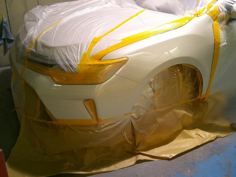 本来であればスポイラー等の付属品の脱着をするのですが、今回はそこまで費用をかけずに安くしてほしいとのご要望でしたので、マスキングにて作業させていただきました。