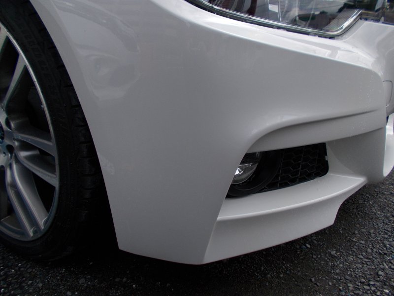 縁石にぶつけてしまったとのことでバンパー下側にヘコミと割れができてしまっています。