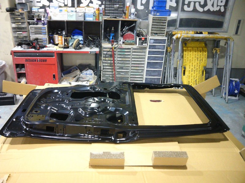 外したまま塗装してしまうと色がズレてしまう恐れがあるため、一度新品ドア単体で表と裏を塗装します。