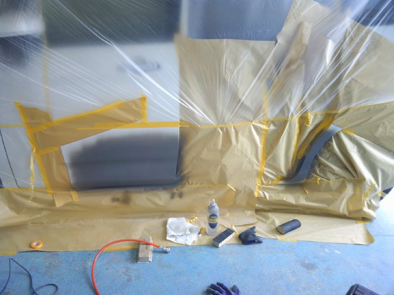 鈑金修理が完了したらサフェーサーと呼ばれる下地塗装を行います。