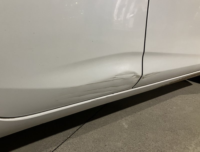 大きめの縁石に気付かず、バック時にぶつけてしまったとのことでバンパー下面に大きな傷ができてしまっています。