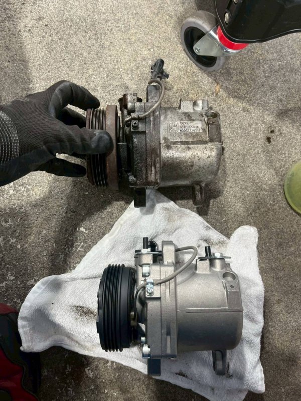 お客様より、暑くなってきたのでエアコンを入れたら効かないとのご連絡を頂き、確認した所エアコンプレッサーの故障が原因でした。