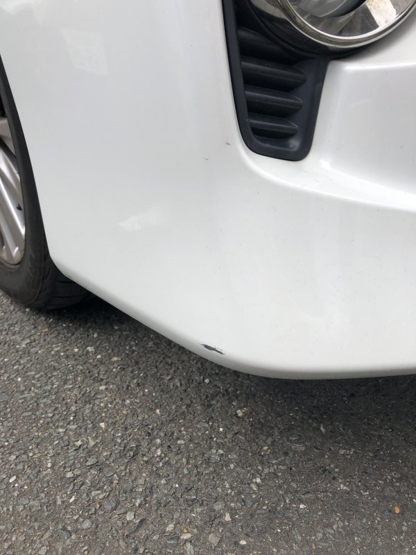 フロントバンパー等を縁石ブロックなどに当ててしまい気になる損傷が出来たため、修理のご相談でご来店を頂きました。