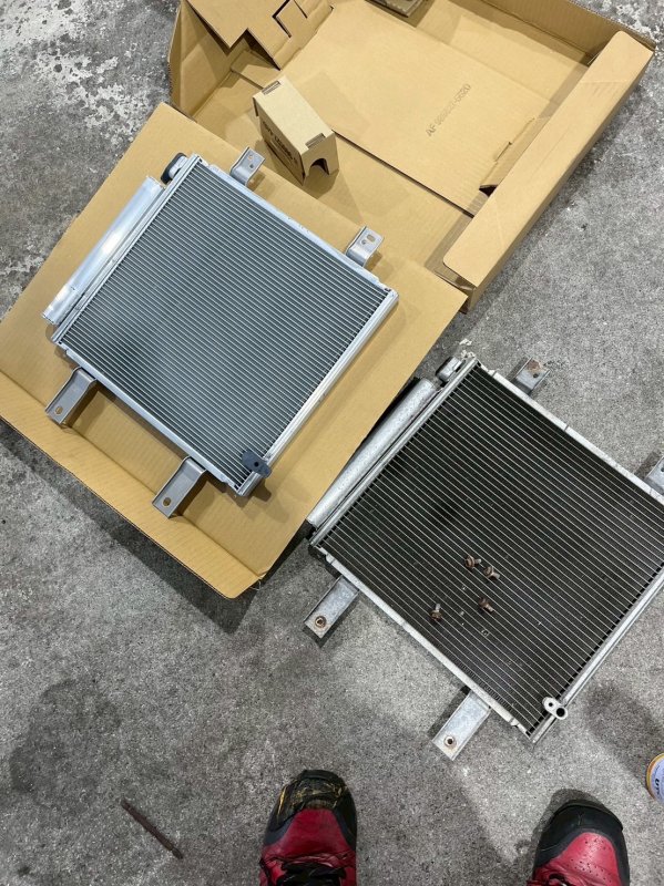 ACコンプレッサーで高温・高圧になった冷媒ガスを冷却し、液体の状態に戻すのがACコンデンサーの役割です。走行風や冷却ファンの風を利用して冷却を行います。