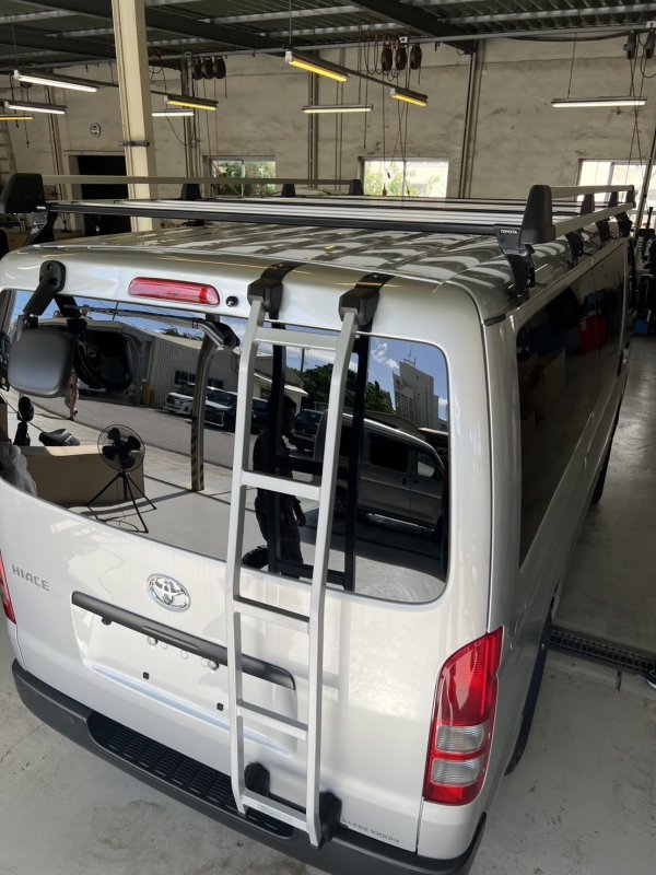 🚐 トヨタ・ハイエース リヤラダー+システムラック(ルーフラック4本足)取付事例
