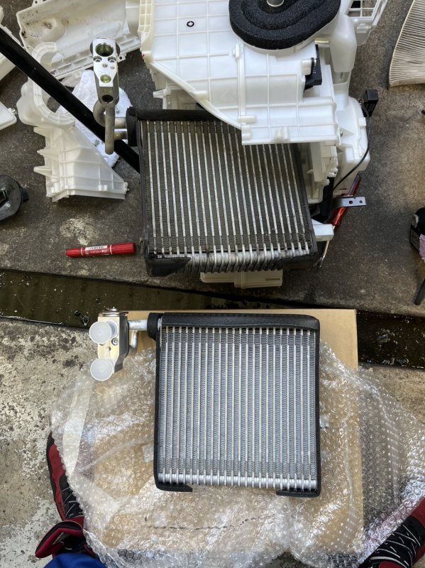交換作業を行った、新旧のエアコン・エバポレーターです。