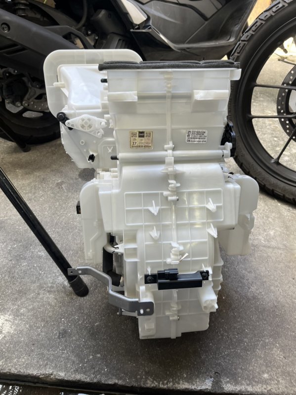 ダッシュボードを取り外し、写真左下に設置されているエアコンのエバポレーターを、新しい部品に交換します。