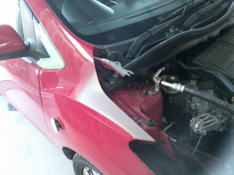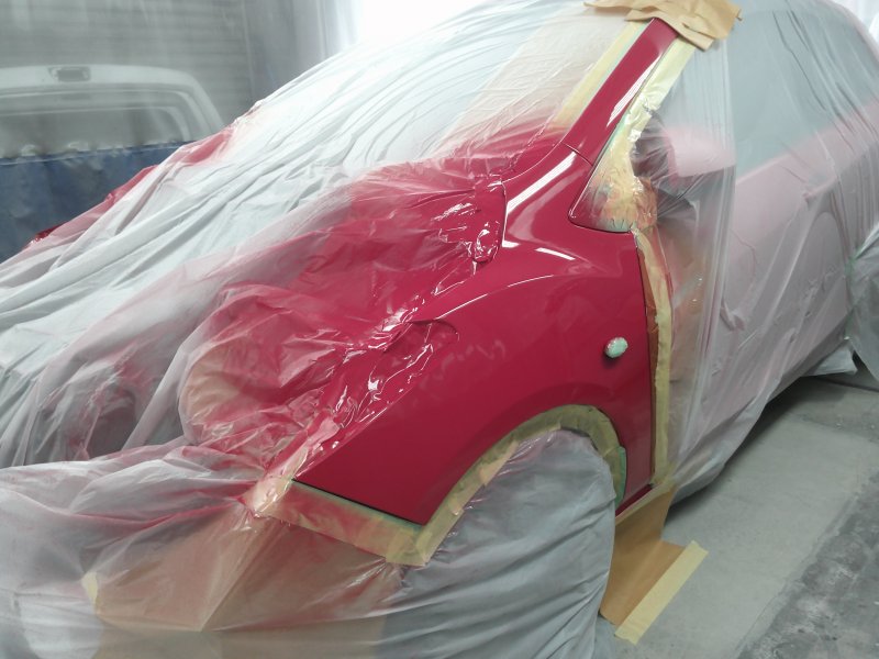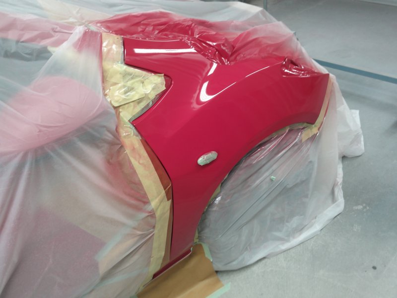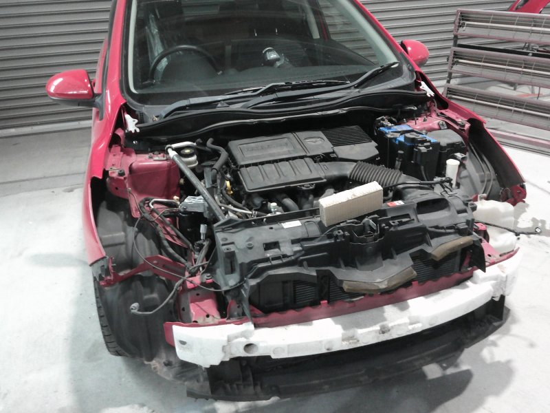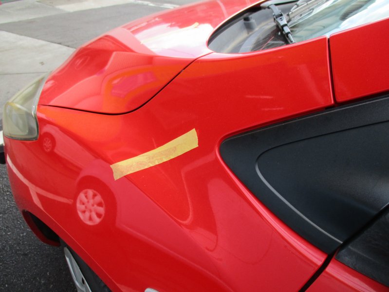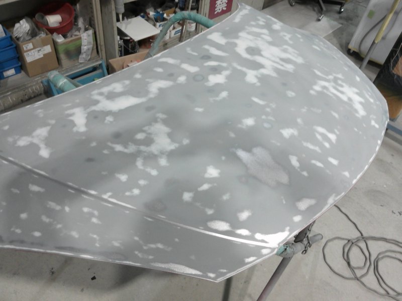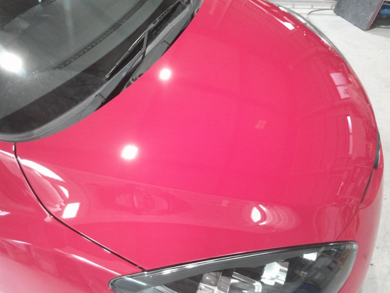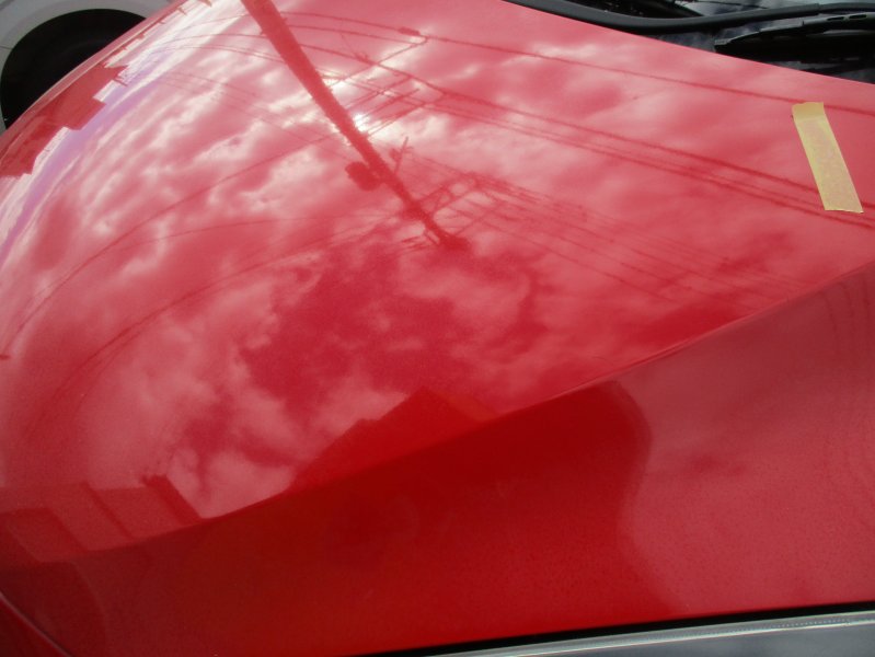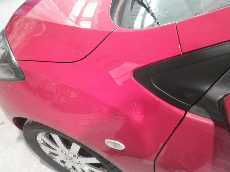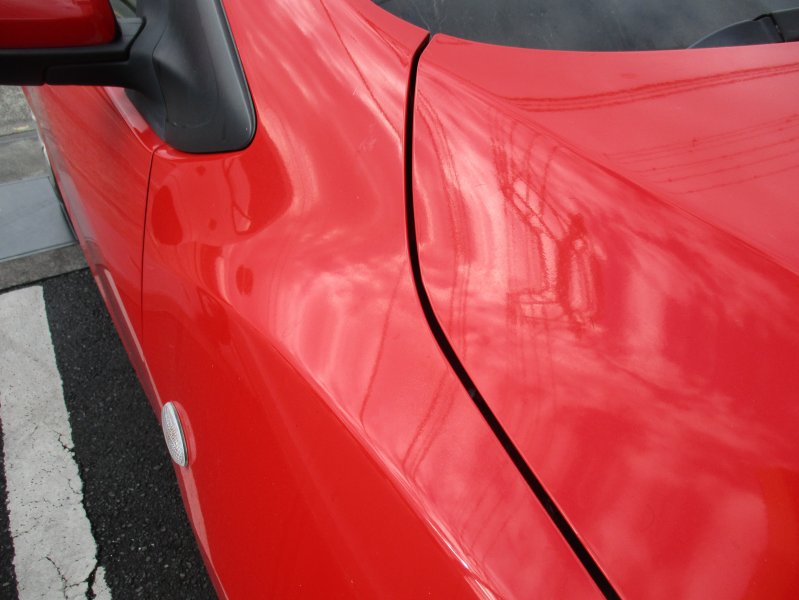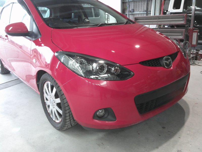 静岡県伊豆の国市 デミオ ヘッドライトスチーマー ボンネット、左右フロントフェンダー板金塗装 クリアハゲ