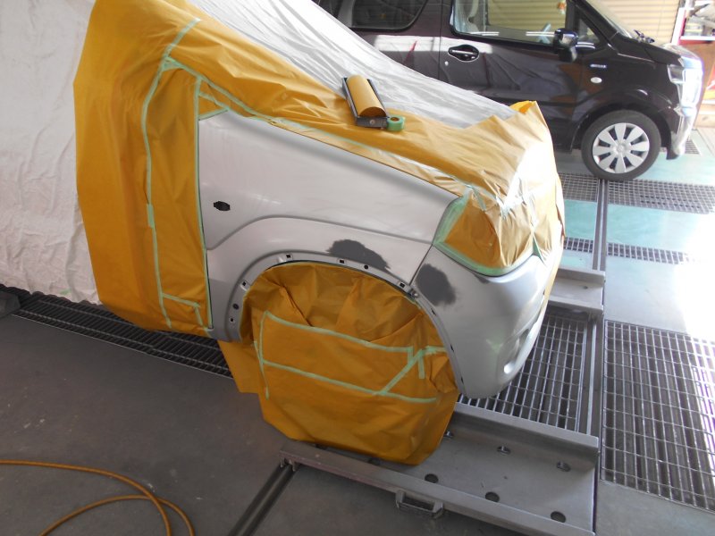 静岡県三島市 Kei 右フロントフェンダー フロントバンパー 鈑金塗装