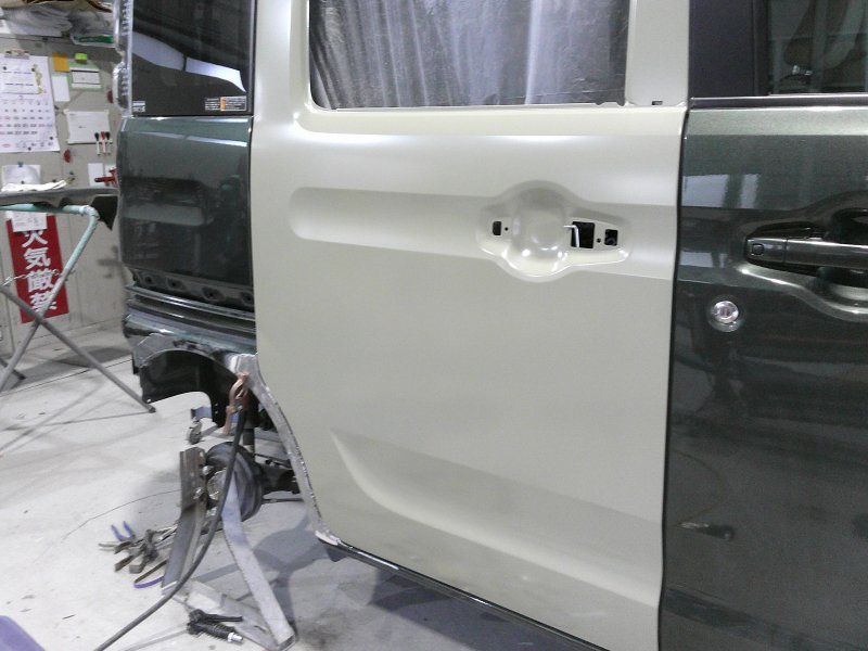 静岡県三島市 スペーシア リヤドア交換 クオータ鈑金塗装 足廻り修理