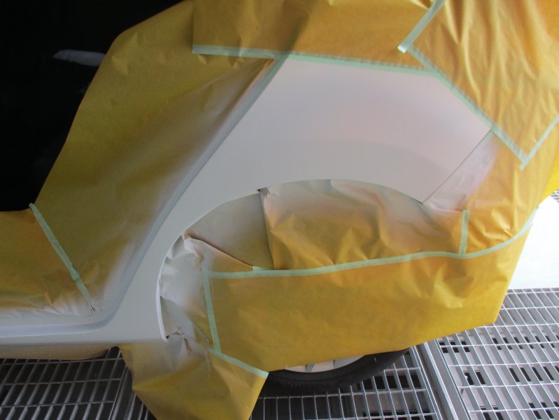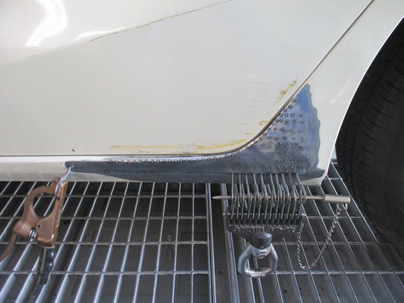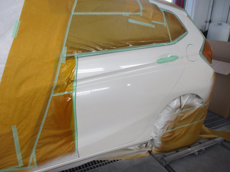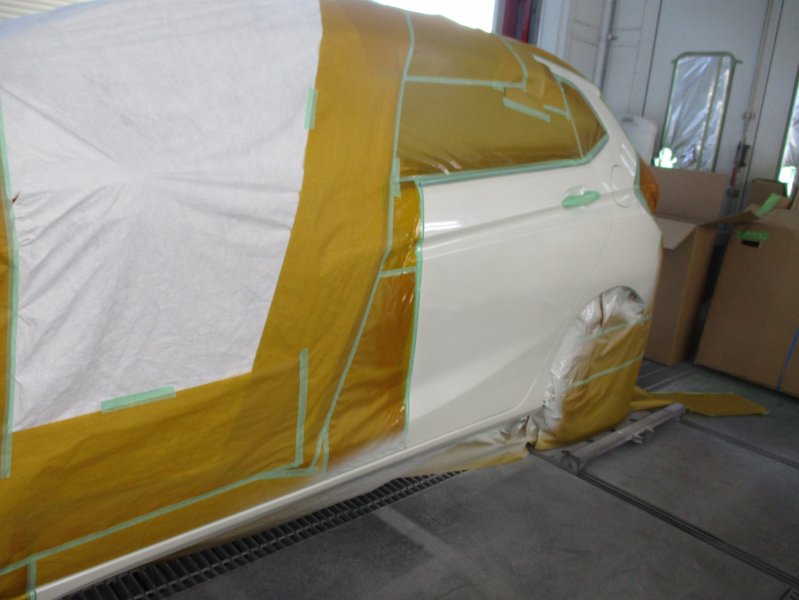 静岡県田方郡 フィット リヤドア 中古交換 リヤフェンダー リッカパネル リヤバンパー 鈑金塗装 2-2