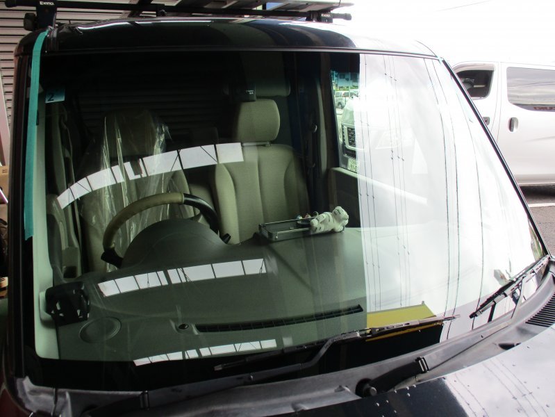 走行中に飛び石が当たり、視界の妨げになる大きなヒビが入ってしまったため、安全性を考慮し交換作業となりました。