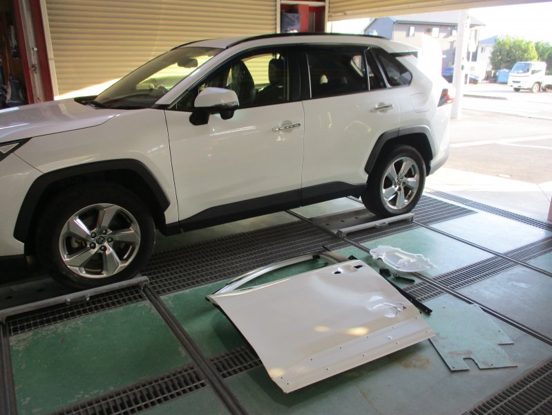 静岡県三島市 RAV4 フロントドア交換 リヤドア、ピラー板金塗装