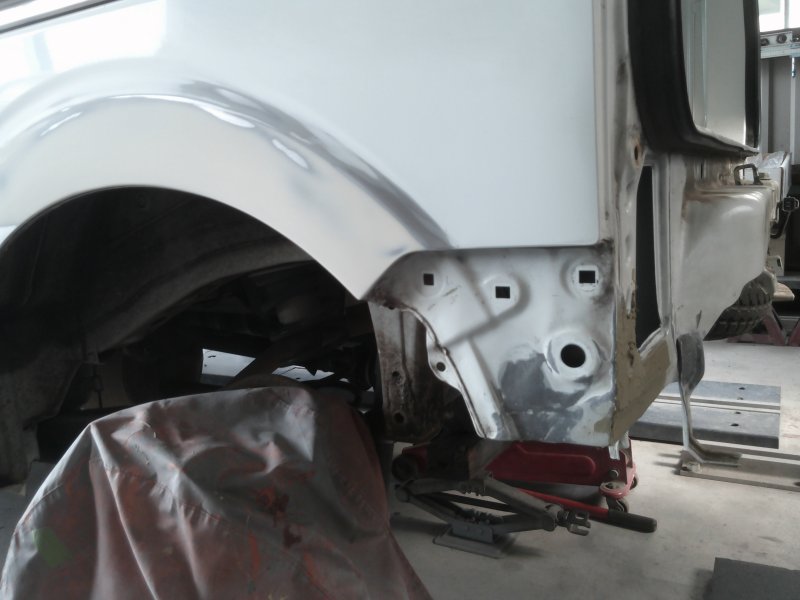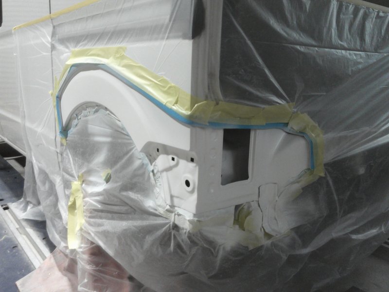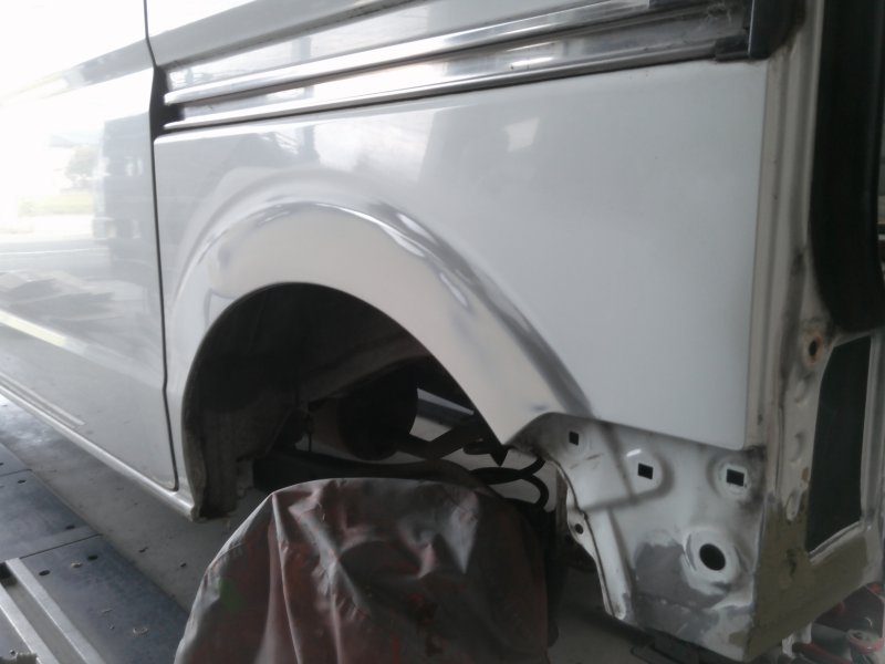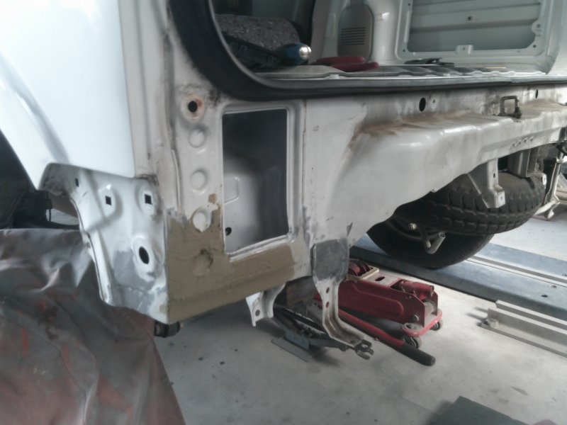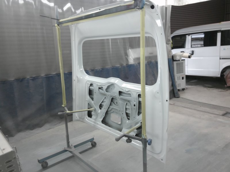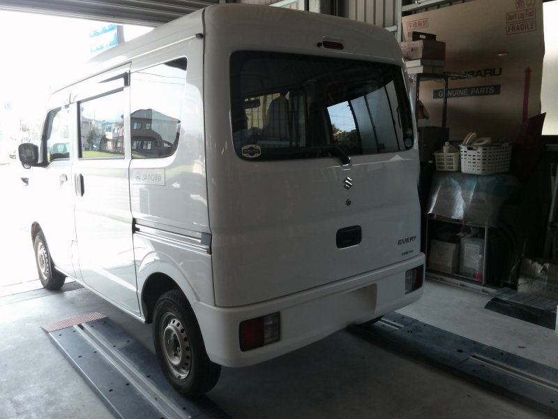 静岡県三島市 エブリー Rバンパー、Rゲート、マフラー、テールレンズ交換 バックパネル、左クオータ板金塗装 2/2
