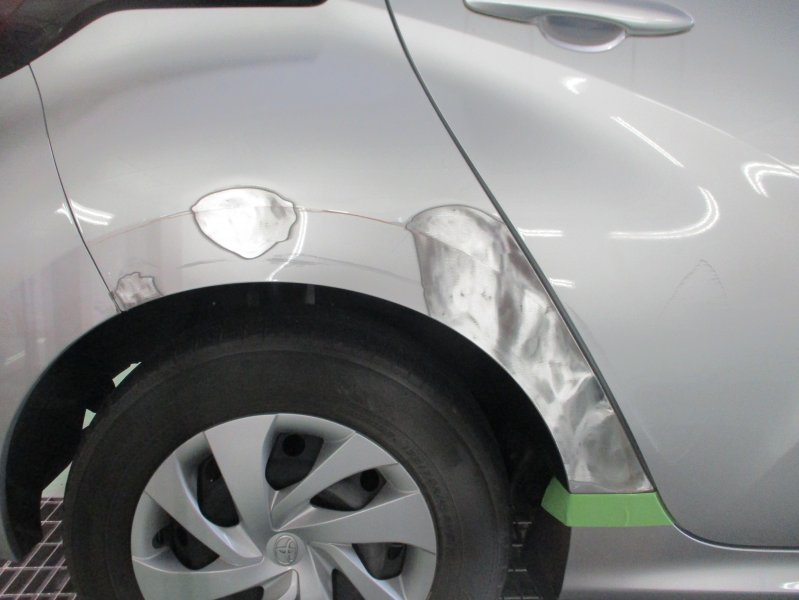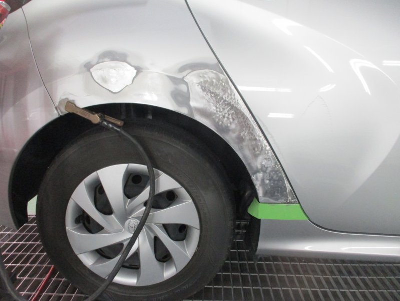 静岡県三島市 プリウスα リヤドア ロッカモール リヤフェンダー 鈑金塗装