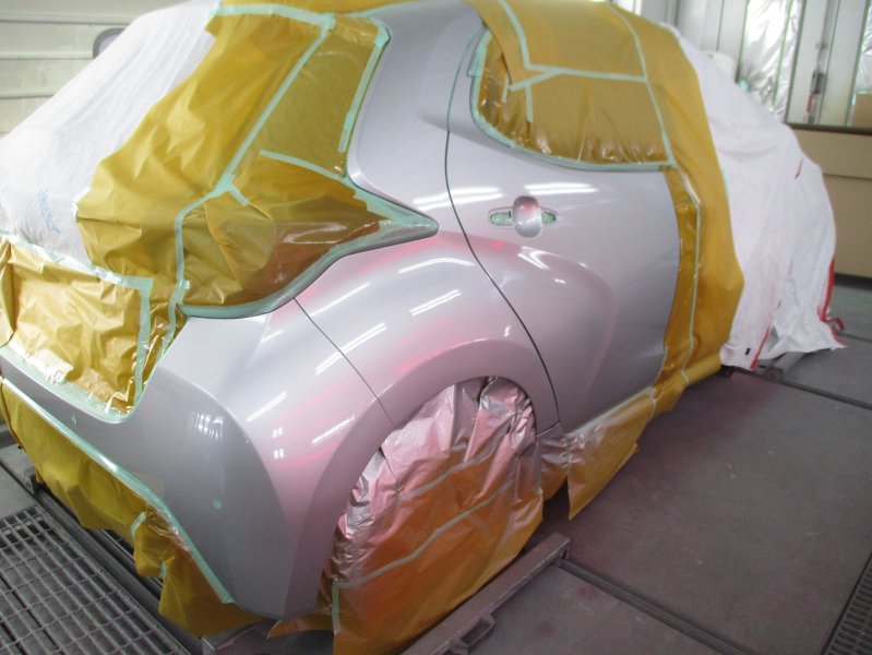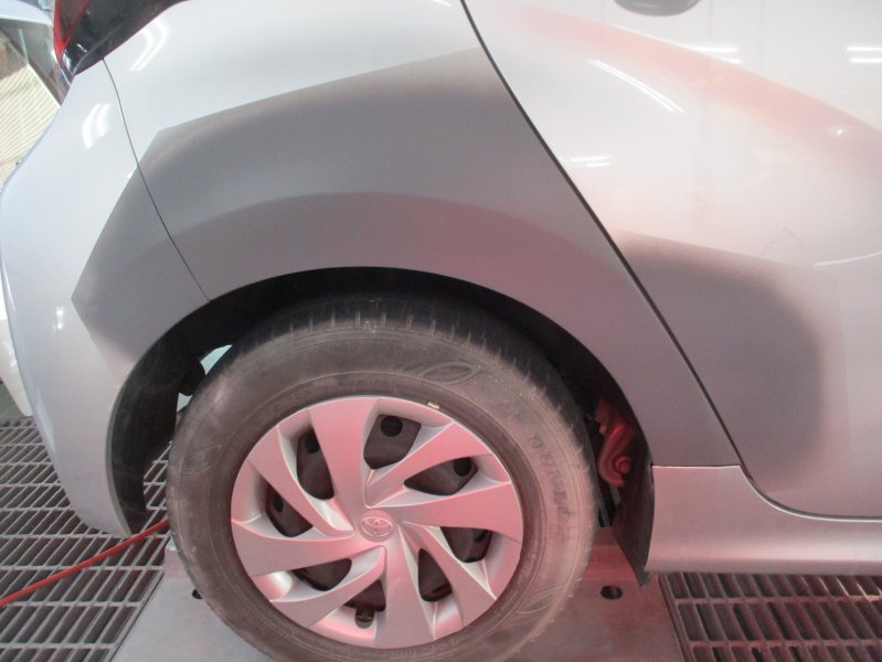 静岡県三島市 ヤリス Rドア、クオータ、リヤバンパー板金塗装 ロッカモール交換