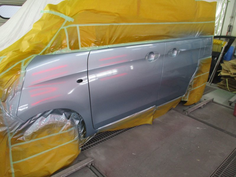 静岡県三島市 スペーシア フロントフェンダー、フロントドア、リヤドア、リヤフェンダー 板金塗装