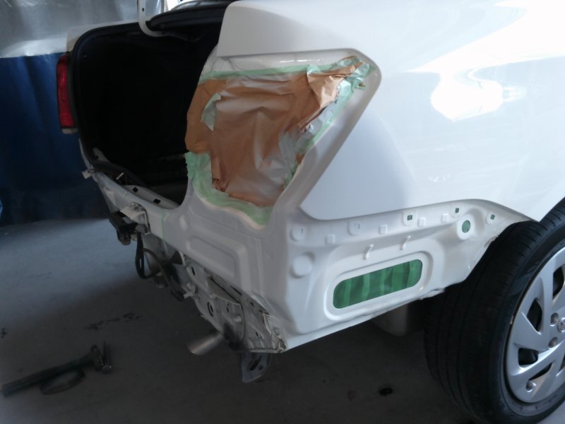 静岡県伊豆の国市 カローラアクシオ Rバンパー、テールレンズ交換 リヤフェンダー板金塗装