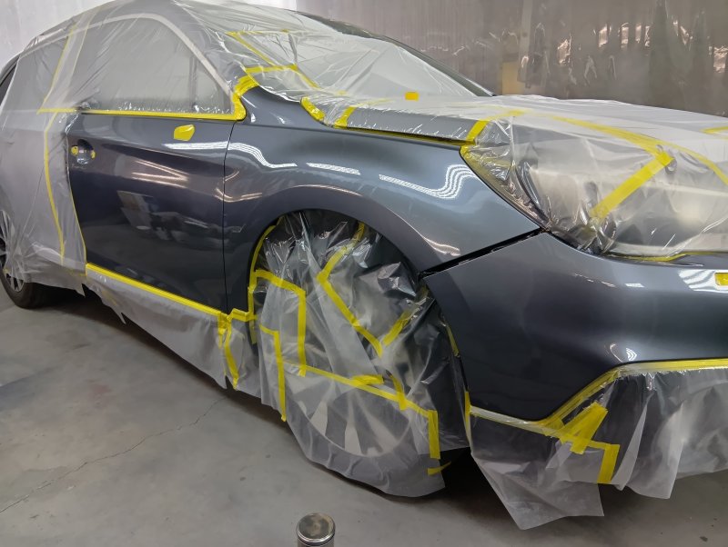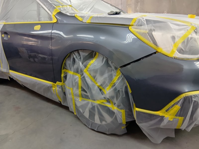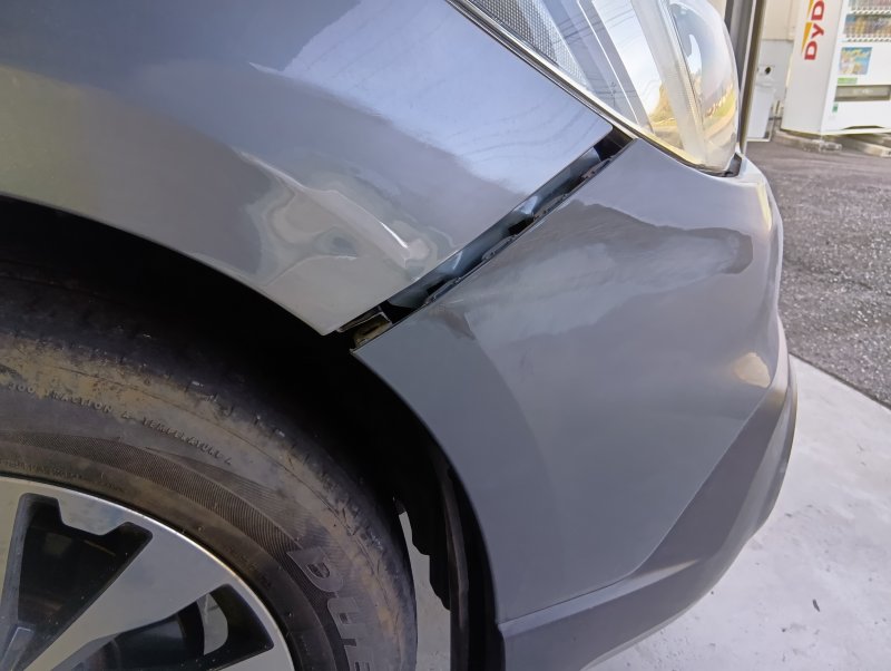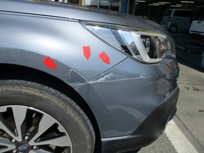 静岡県駿東郡 レガシィアウトバック フロントバンパー、フロントフェンダー板金塗装