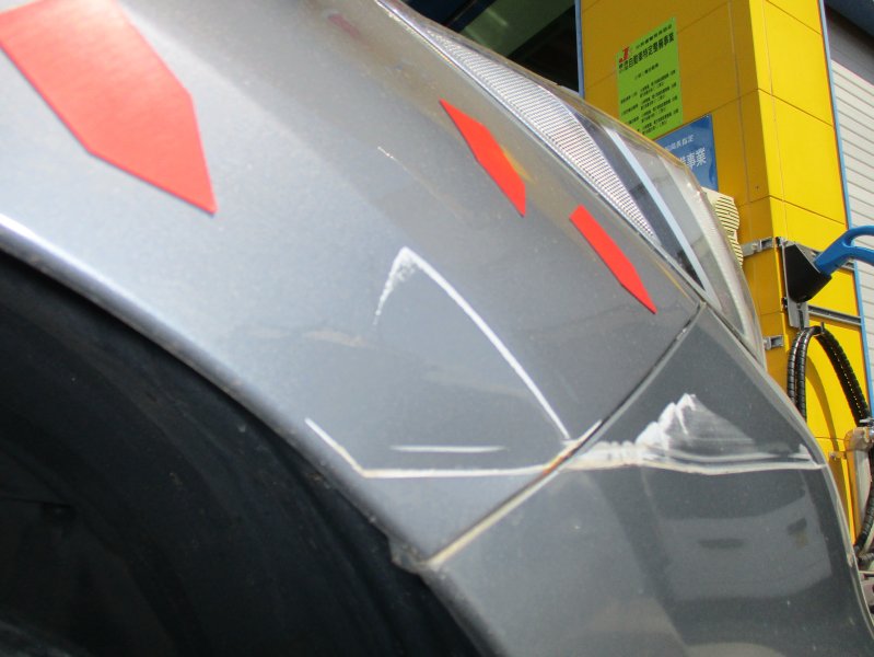 静岡県田方郡 フィット リヤドア 中古交換 リヤフェンダー リッカパネル リヤバンパー 鈑金塗装 2-2