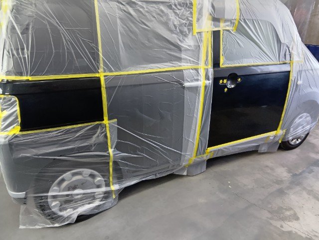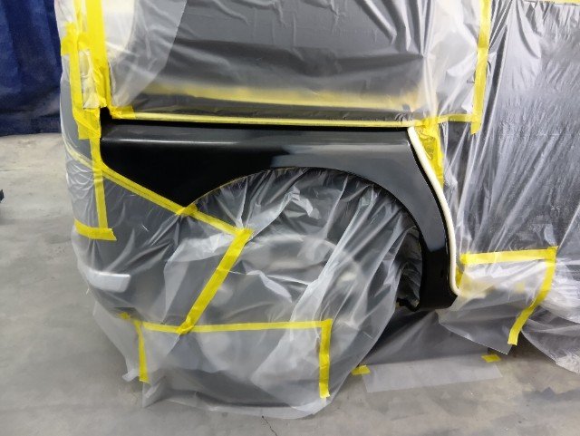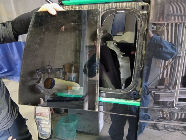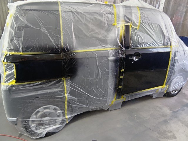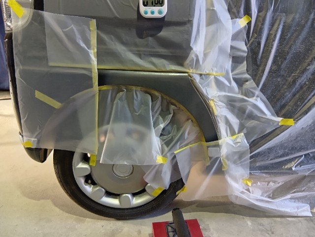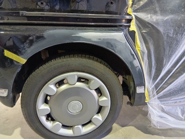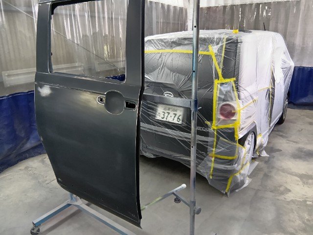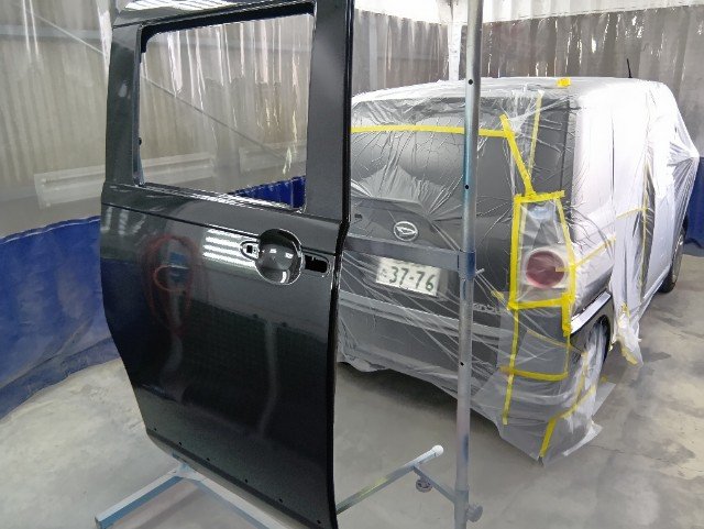 静岡県駿東郡 ムーヴキャンバス リヤドア、クオータ板金塗装 クオータガラス交換