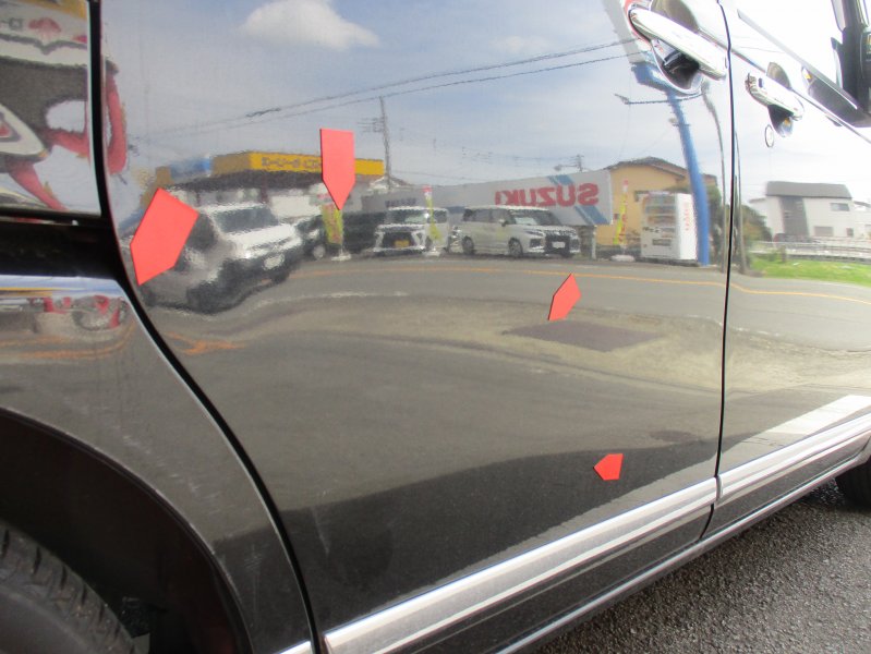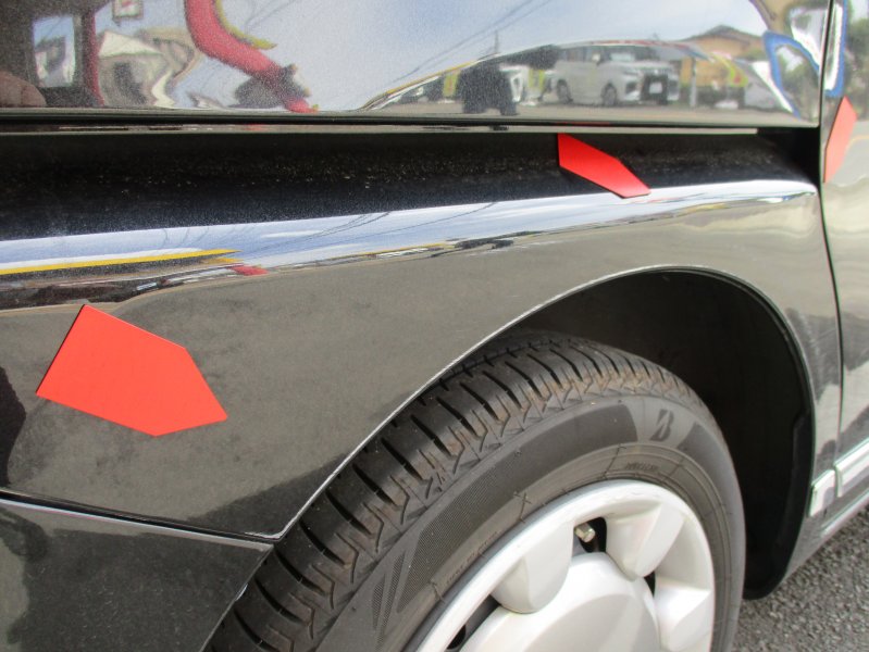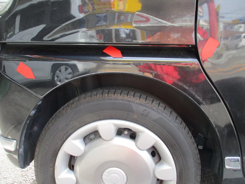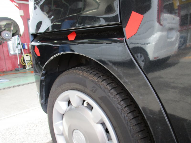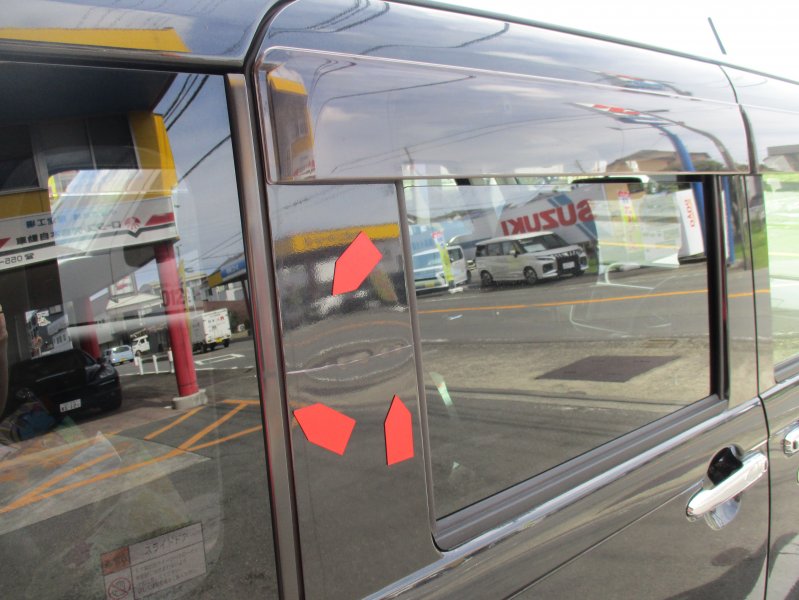 静岡県駿東郡 ムーヴキャンバス リヤドア、クオータ板金塗装 クオータガラス交換