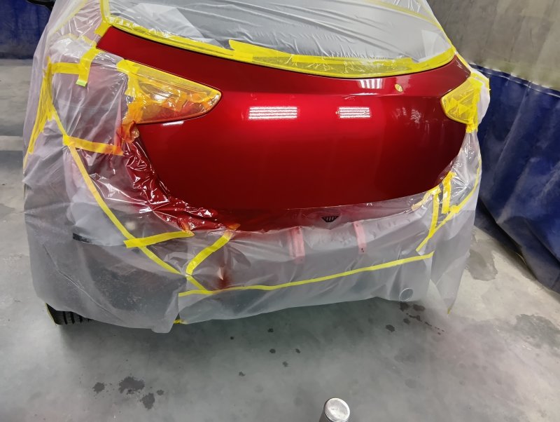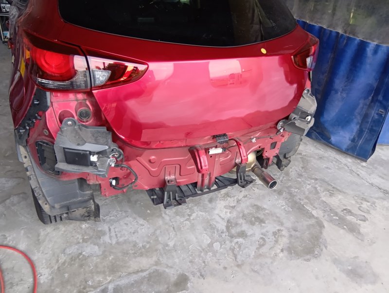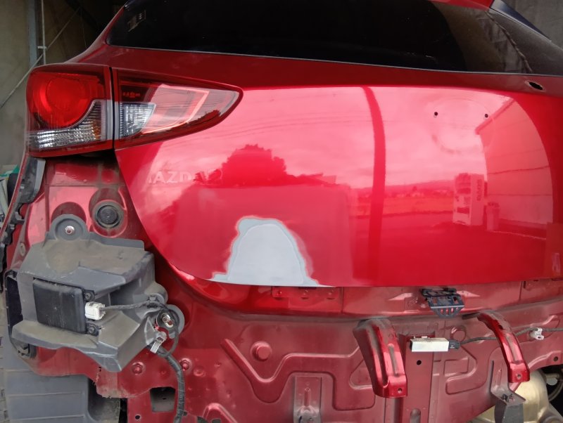 静岡県賀茂郡 マツダ2 リヤバンパー、バックドア、バックパネル板金塗装