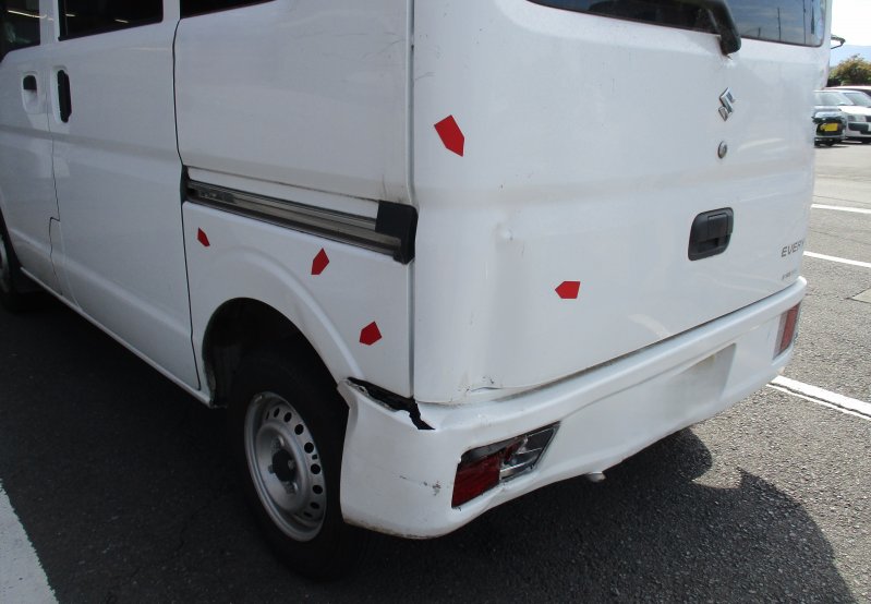 静岡県三島市 エブリー Rバンパー、Rゲート、マフラー、テールレンズ交換 バックパネル、左クオータ板金塗装 2/2