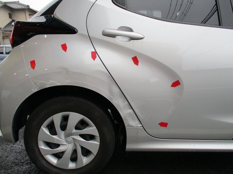 静岡県三島市 ヤリス Rドア、クオータ、リヤバンパー板金塗装 ロッカモール交換