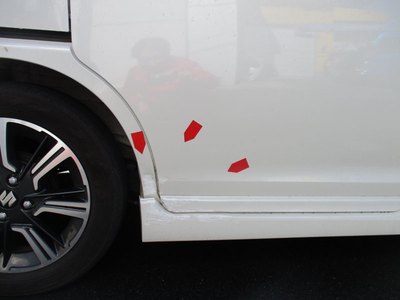 静岡県伊豆の国市 アルト リヤドア、ロッカパネル板金塗装 ホイルキャップ交換