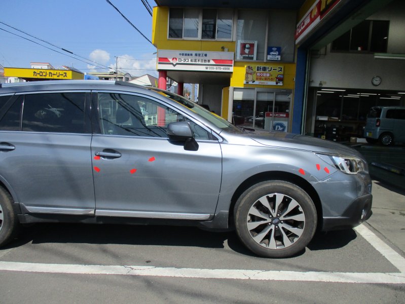 静岡県駿東郡 レガシィアウトバック フロントバンパー、フロントフェンダー板金塗装
