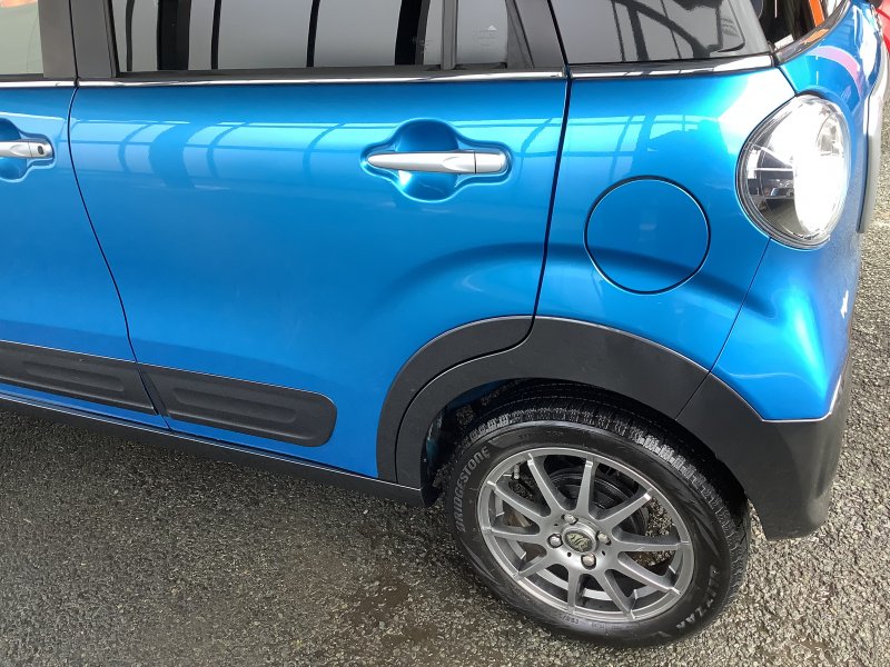 今回ご紹介する事例は、ダイハツ キャストアクティバの左側フロントドア・リヤドア・クオーターフロントドアモールディングロワ・リヤドアモールディングロアAssyにかけてヘコミキズの修理内容となります。
