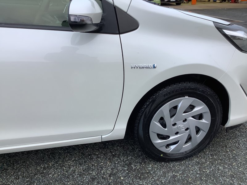 長野市上野:トヨタ アクア、右フロントフェンダー・右フロントドア・右フロントロッカーパネルヘコミキズパーツ別交換・板金塗装保険修理事例です。型式:DAAーNHP10