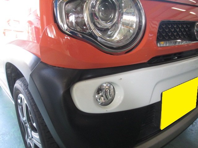 【長野県長野市 川中島 今井 稲里町 篠ノ井】マツダ・フレアクロスオーバー、平成30年5月式、DAA-MD41S、フロントバンパーガード交換、ヘッドランプキズ・ヘコミ修理事例、最安値、最短修理日数、安心安全