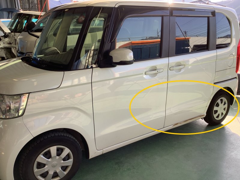 長野県長野市松代町:ホンダNーWGN 左側リヤドア・クオーターパネル板金塗装事例です。型式DBAーMH23SーWSTEA2