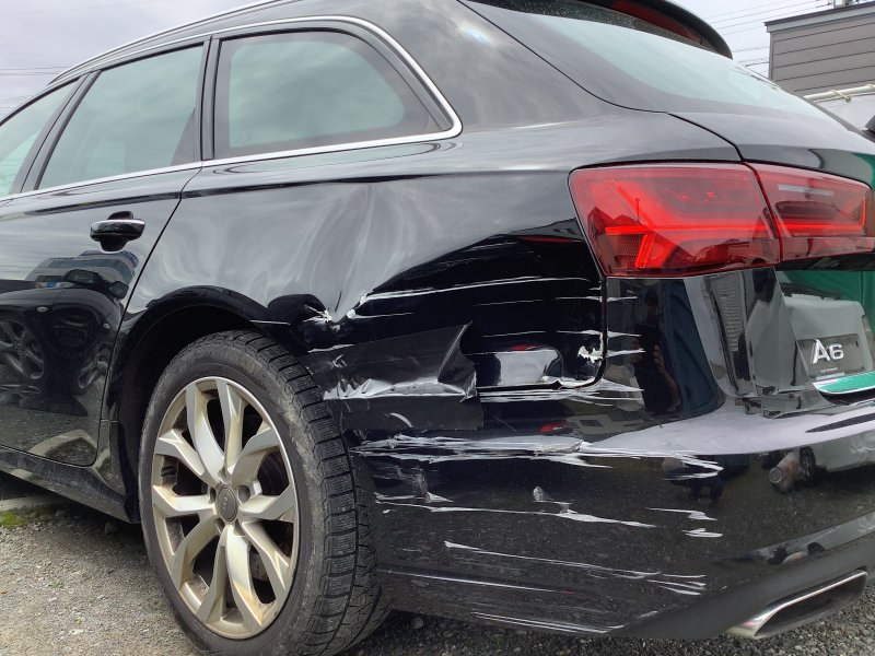 長野県長野市真島:アウディA6、左リヤアウトサイドパネル板金塗装・リヤバンパー外傷修正塗装、実例紹介です。