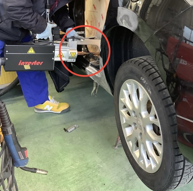 今回ご紹介する修復事例は、トヨタ ブレイドの左側サイドシル・リヤフェンダーのヘコミ傷の板金→パーツカット〜溶接作業の風景になります。