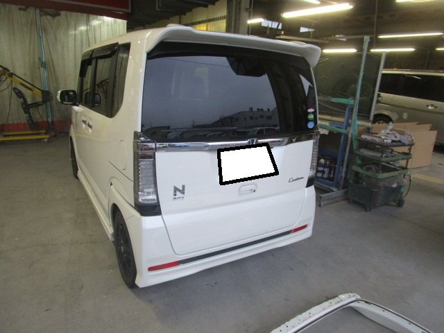 群馬県前橋市|N-BOX(ホンダ)のキズ・へこみ直し事例(バックドア キズ・へこみ直し(板金修理)+バックパネルの修正作業)