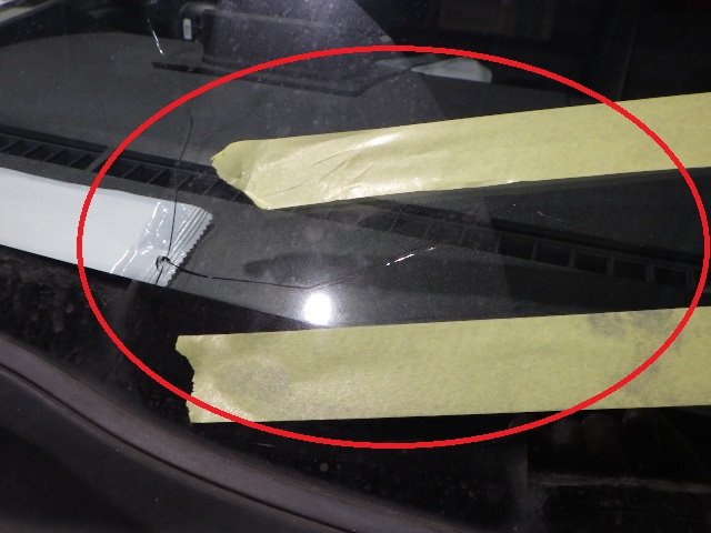 お車を拝見させて頂くと、フロントガラスの中央下付近に大きなヒビ割れを確認致しました。小さな飛び石から広がっていったとの事でした。
