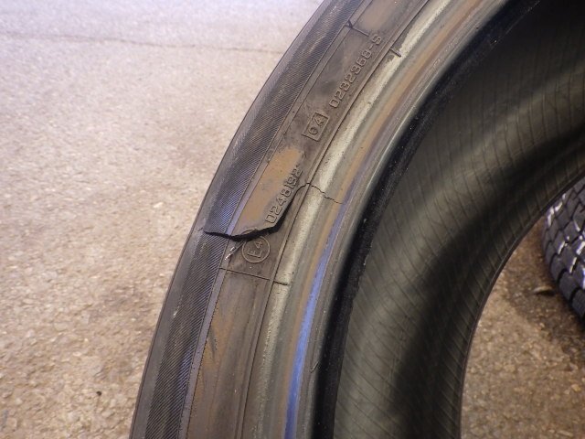 お車を確認させて頂くと、右前タイヤがパンクしておりタイヤ側面部分が割れているのを確認致しました。走行中に落下物を避けようとしてハンドルを切り、縁石に接触してしまわれたそうです。